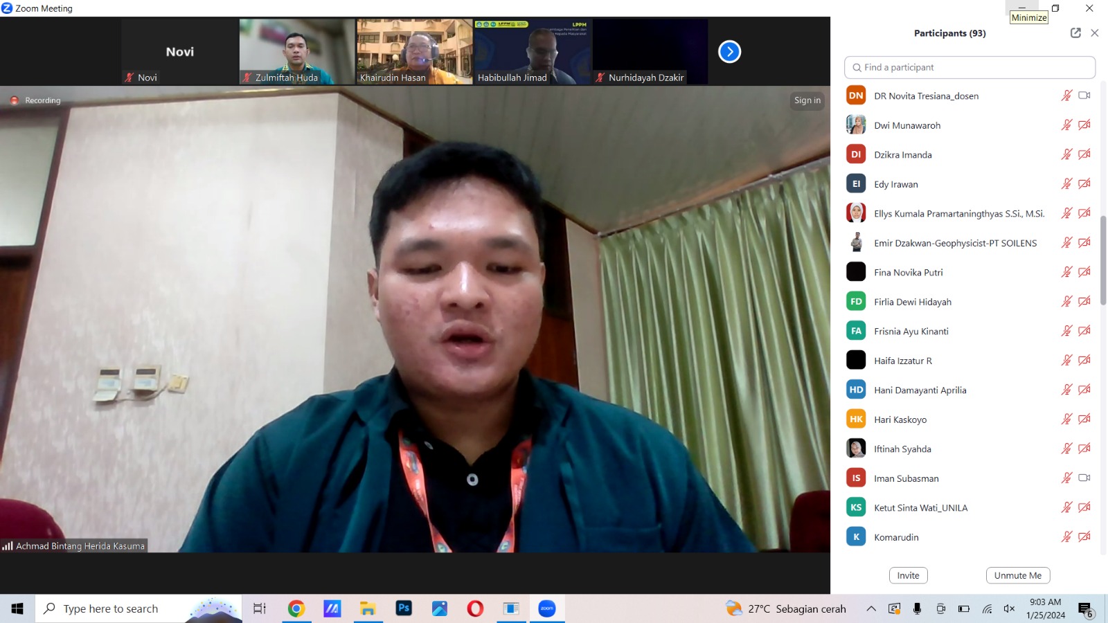 Unit Pelaksana Teknis (UPT) Perpustakaan Universitas Lampung (Unila) berkolaborasi dengan Lembaga Penelitian dan Pengabdian kepada Masyarakat (LPPM) Unila melaksanakan kegiatan webinar yang bertajuk “Meningkatkan Kualitas Paper Riset Menggunakan Elsevier’s ScienceDirect,” secara virtual menggunakan zoom meeting, Kamis, 25 Januari 2024.