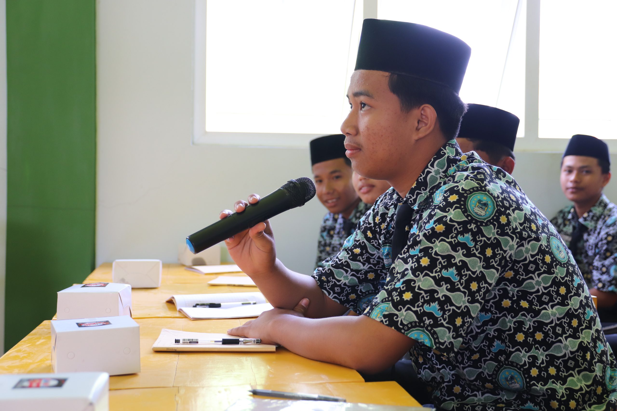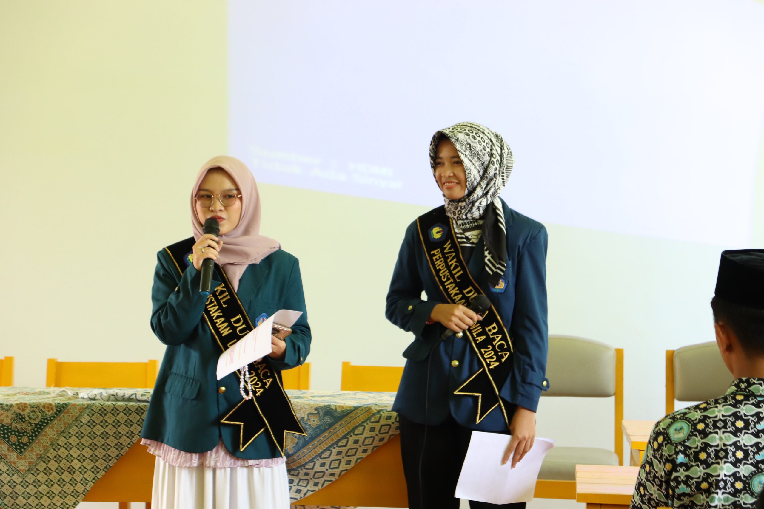 Rombongan Perpustakaan Unila yang terdiri dari Koordinator Divisi Litbang dan Kerja Sama, Koordinator TIK, para pustakawan, staf dan mahasiswa komunitas baca disambut oleh Kepala Sekolah SMA TMI Roudlatul Quran Al Hajj Gus Muhammad Yahya Mustofa Kamal S.AG Al-Hafidz, Waka Kesiswaan Quran Ngaliman S.H.I., M.Pd bersama para guru siswa-siswi perwakilan kelas X dan XII.