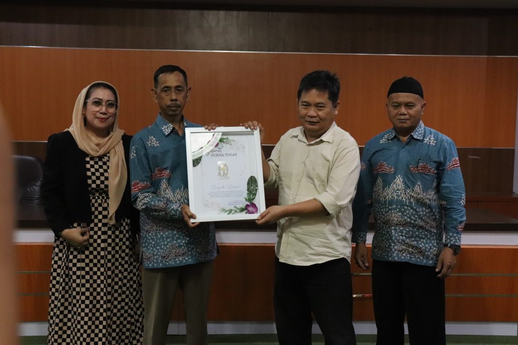 Sebagai bentuk penghargaan, Bapak Harun menerima kenang-kenangan yang diserahkan langsung oleh Dr. Khairudin.