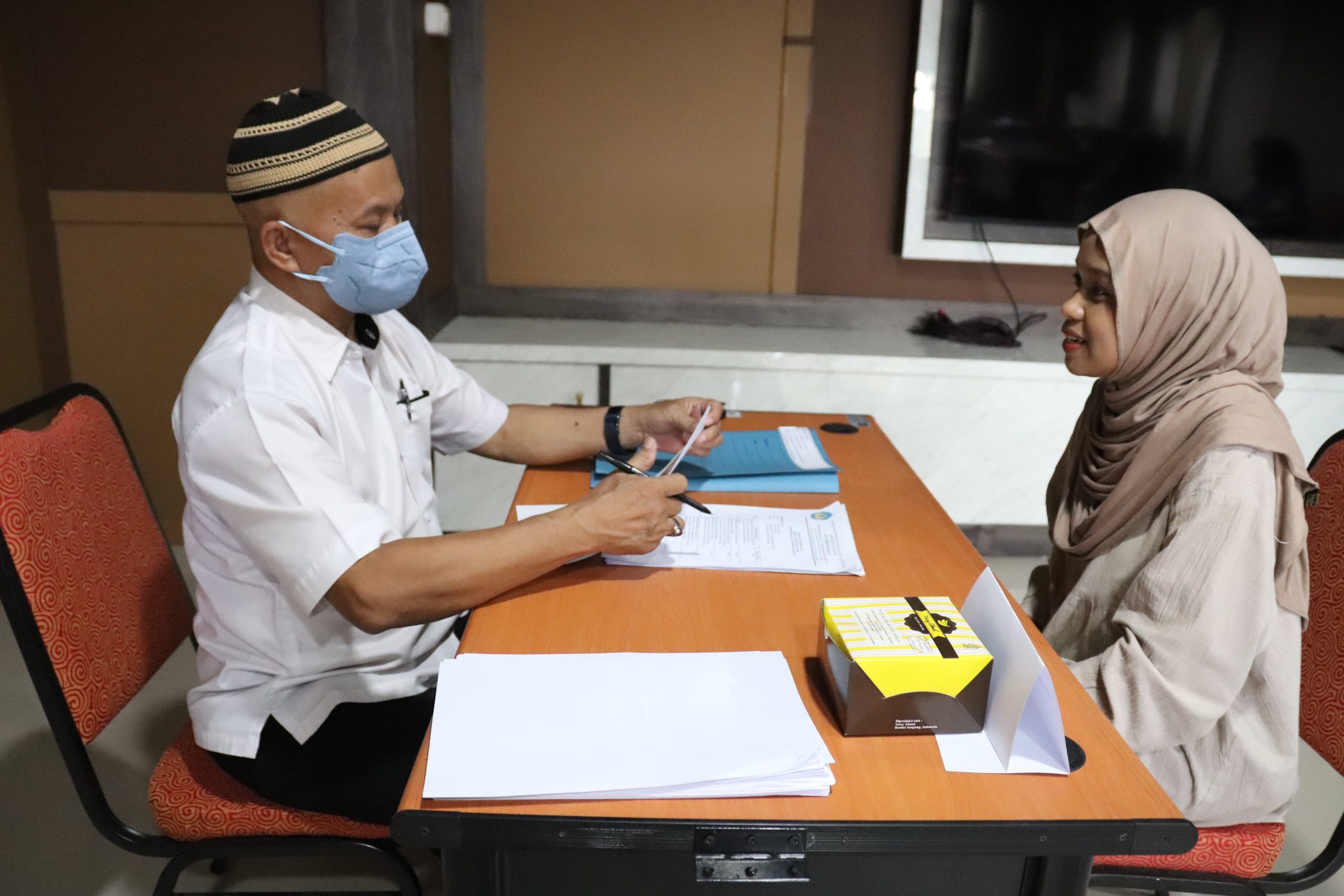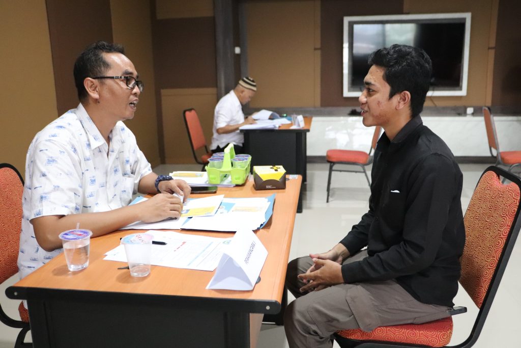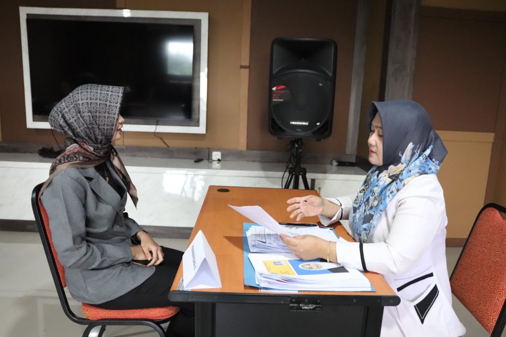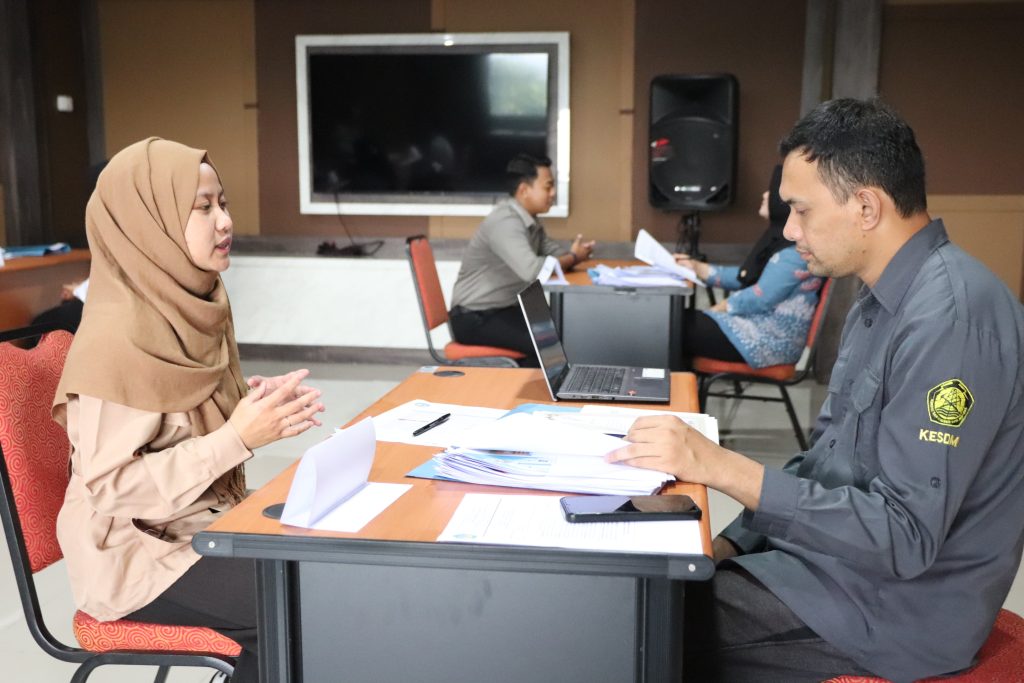 Para juri, yang terdiri dari pimpinan dan pustakawan di UPT Perpustakaan, yaitu Aristianto Husin, S.H., M.H. (Koordinator Bagian Tata Usaha), Sumarno, S.Sos., M.M. (Koordinator Subdivisi Pengolahan Bahan Pustaka), Anita Ekarini, S.Sos., M.Si. (Koordinator Subdivisi Referensi & KKI), dan Zulmiftah Huda, S.T., M.Eng. (Ketua Divisi Litbang dan Kerjasama), memberikan pertanyaan mendalam untuk mengeksplorasi program dan ide yang diusulkan oleh setiap peserta. Mereka juga mengevaluasi kemampuan peserta dalam menyampaikan ide dan memengaruhi orang lain.