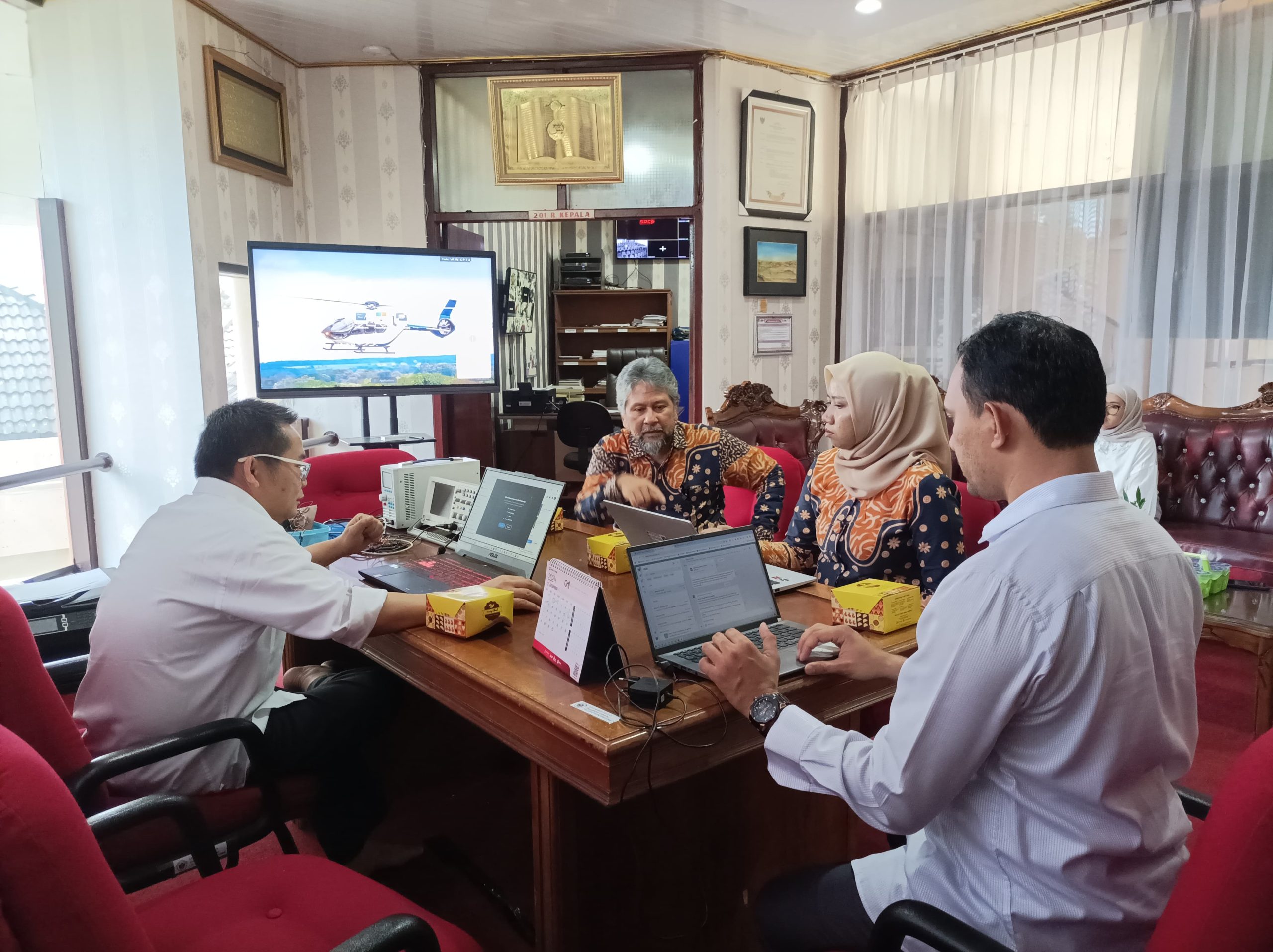 UPT Perpustakaan Universitas Lampung (Unila) menerima kunjungan tim UPT Pengembangan Kerjasama dan Layanan Internasional (PKLI) Unila, Rabu, 18 Desember 2024 di ruang kerja Kepala PT perpustakaan Unila.