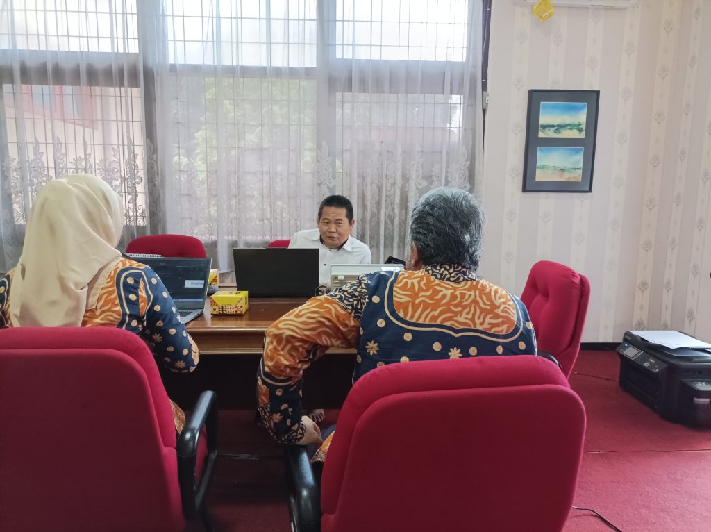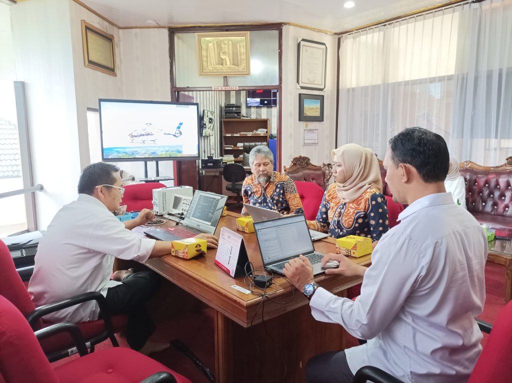 Kunjungan tim PKLI ke Perpustakaan Unila dalam rangka melakukan bimbingan teknis terkait pengisian laporan kerja sama UPT Perpustakaan Unila tahun 2024.