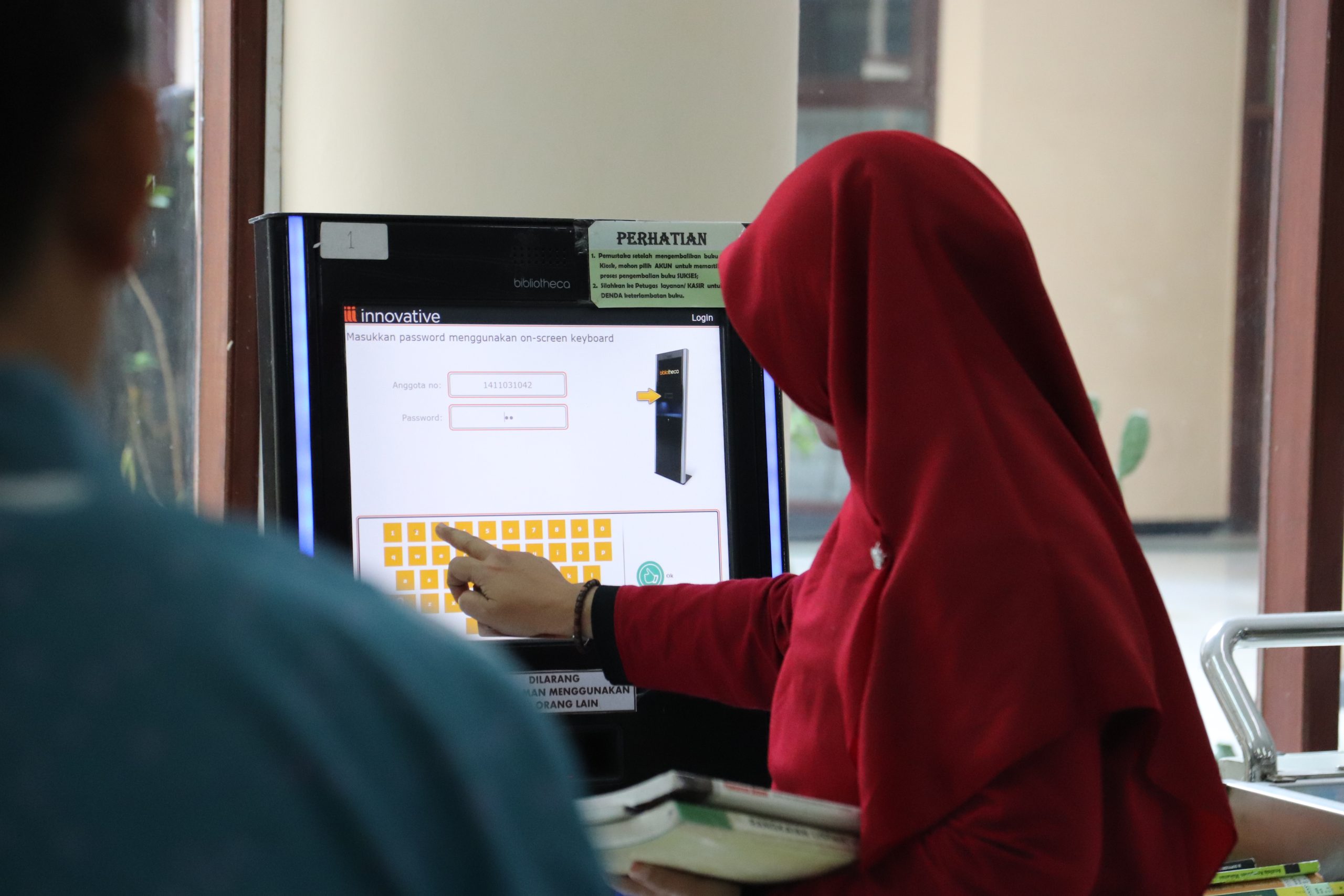 Pada layanan sirkulasi, perwakilan pustakawan, Endah Kurniasari, S.I.Kom., menjelaskan dan mendemonstrasikan tata cara penggunaan mesin anjungan peminjaman dan pengembalian buku secara mandiri oleh pemustaka atau Kios K.[Angel]