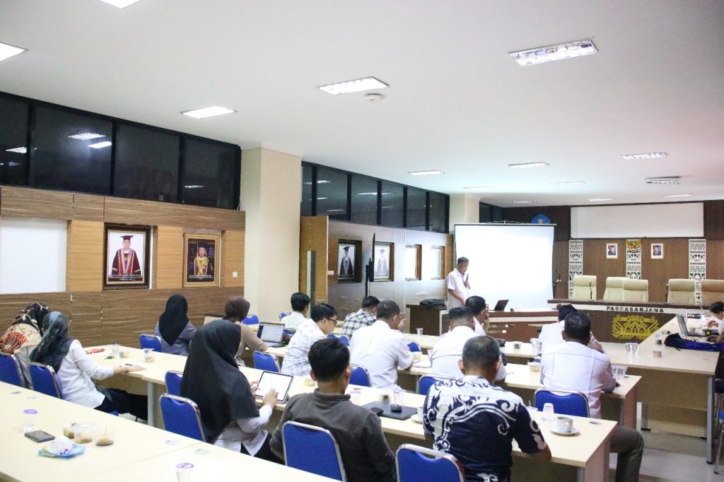 Unit Penunjang Akademik (UPA) Perpustakaan Universitas Lampung (Unila) menghadiri kegiatan rapat finalisasi persiapan Akreditasi Prodi Magister Ilmu Lingkungan (MIL) Program Pascasarjana Unila, Rabu 16 April 2025, di ruang aula gedung A, Program Pascasarjana Unila,