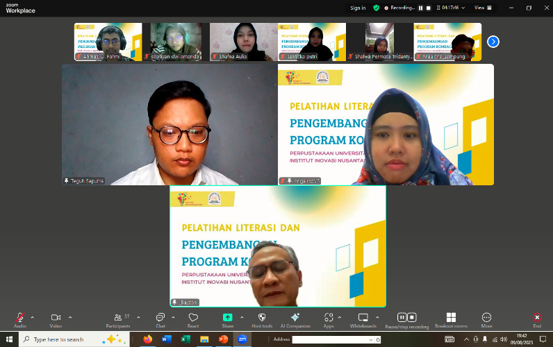 Pelatihan pertama ini dihadiri Kepala Unit Penunjang Akademik (UPA) Perpustakaan Unila Bayzoni, S.T., M.T., Pendiri IINUSA Ahmad U. Fahmi, Direktur Eksekutif IINUSA sekaligus penulis buku Kele, Teguh Saputra sebagai narasumber, dan anggota Kombaca Unila.