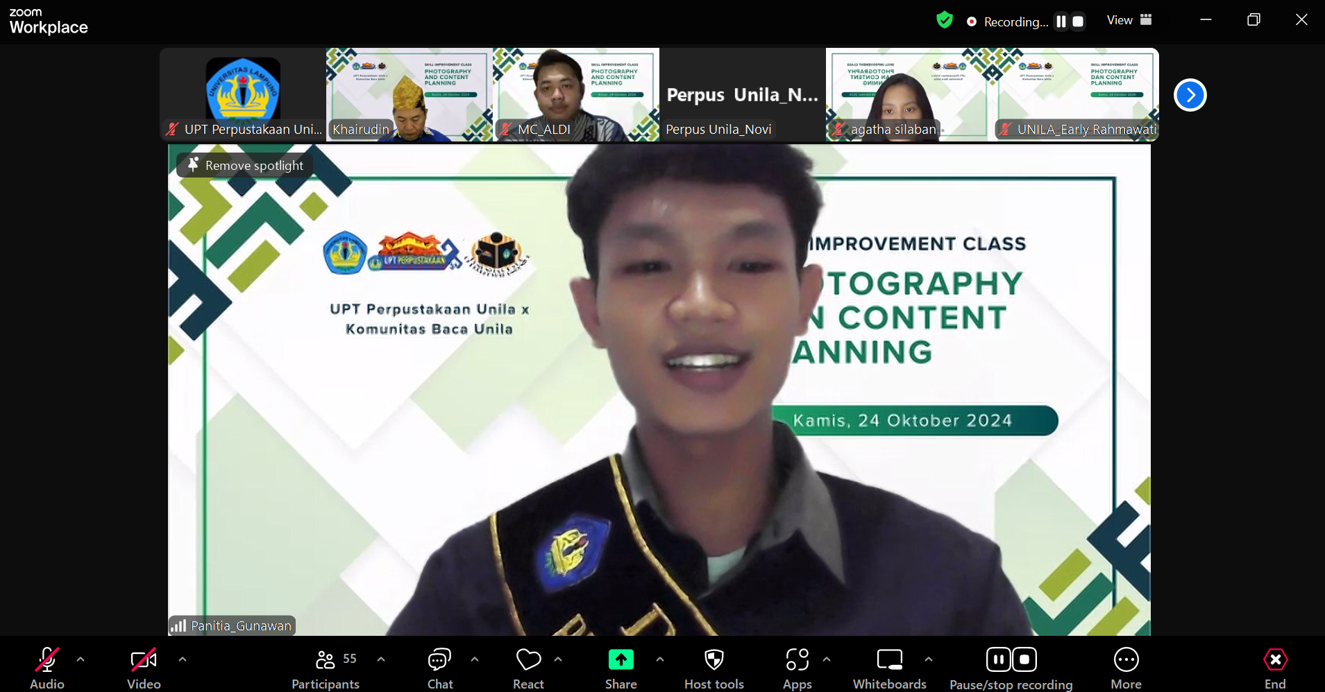 Gunawan juga pernah mengenalkan tentang Komunitas Baca Perpustakaan Unila di kegiatan orientasi perpustakaan dan narsum podcast serta event lainnya, disini Gunawan belajar tentang cara berkomuniasi yang baik.