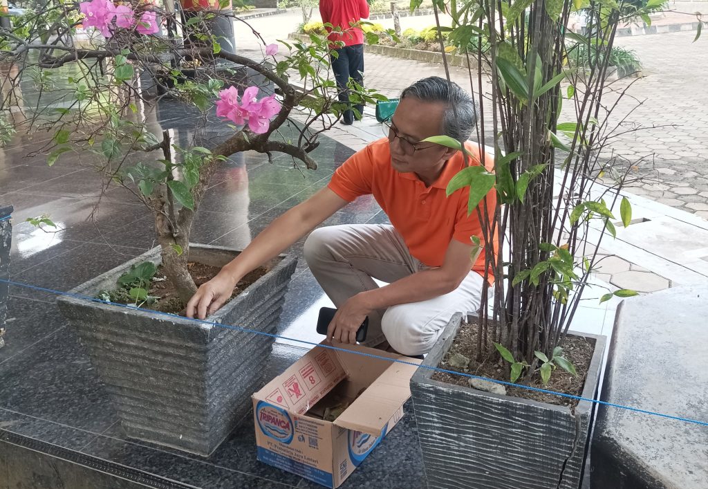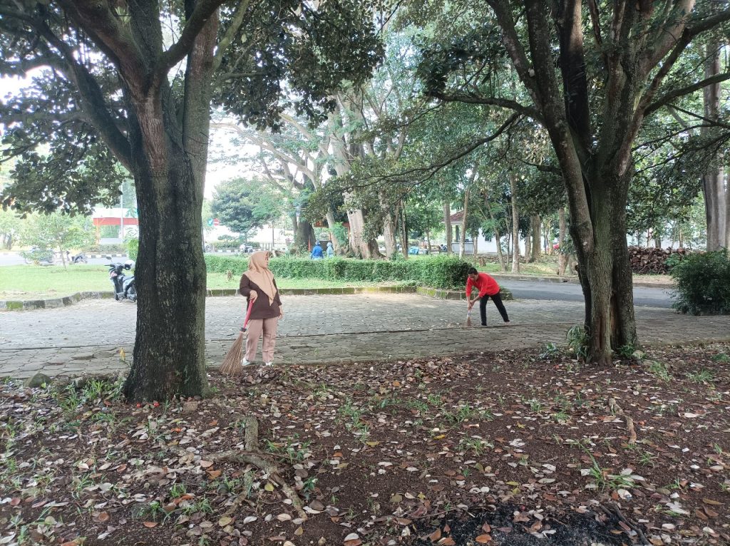 Kegiatan ini betujuan untuk menjaga kebersihan lingkungan sekitar perpustakaan dan kebersihan taman agar tetap asri.