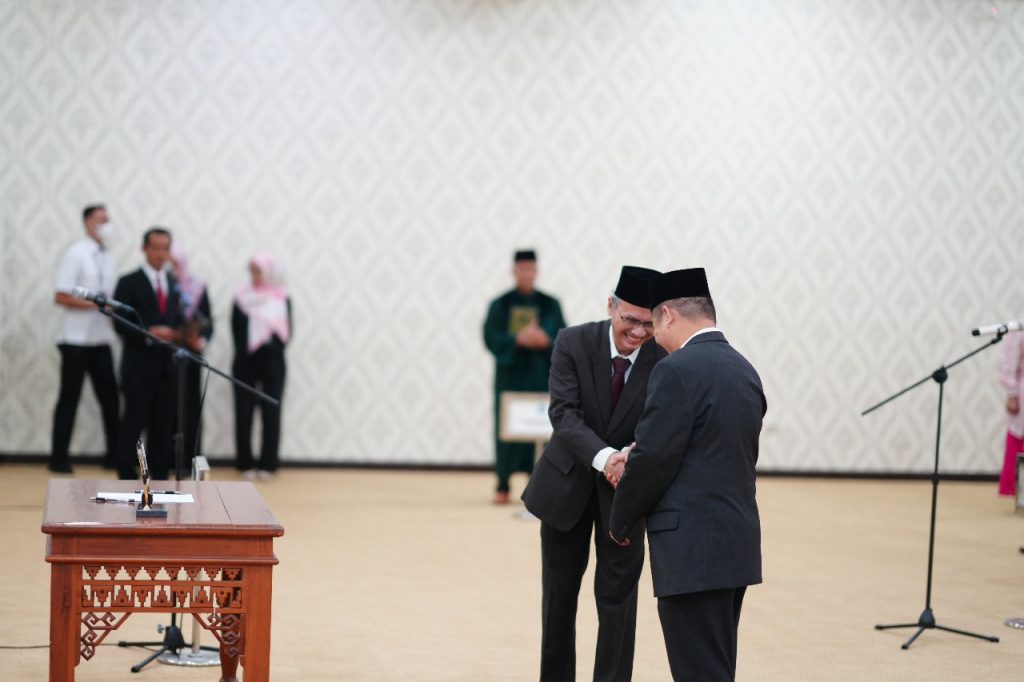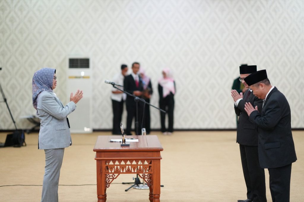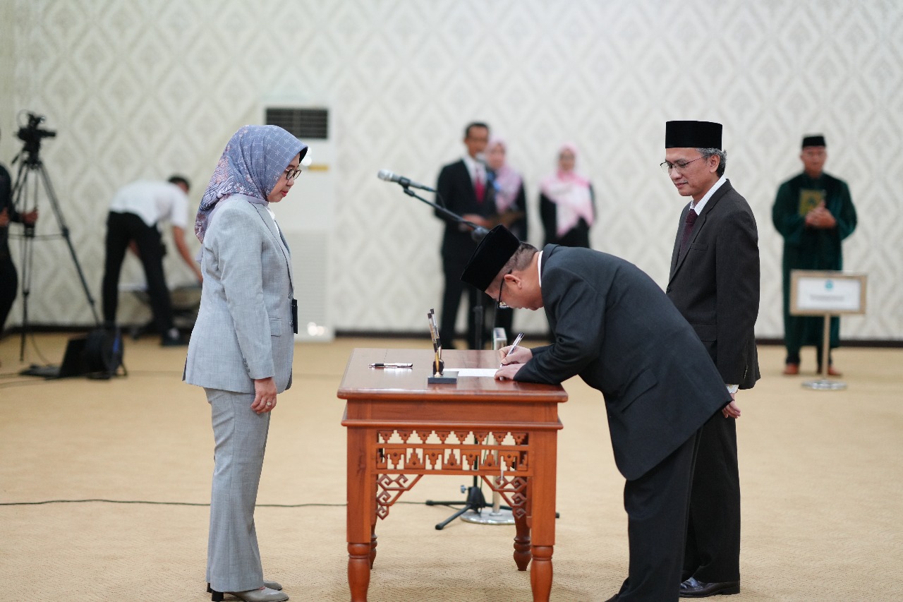 Rektor Universitas Lampung (Unila) Prof. Dr. Ir. Lusmeilia Afriani, D.E.A., IPM., ASEAN Eng., melantik Bayzoni, S.T., M.T., sebagai Kepala Unit Penunjang Akademik (UPA) Perpustakaan Unila menggantikan Dr. Eng. Ir. Khairudin, S.T., M.Sc.